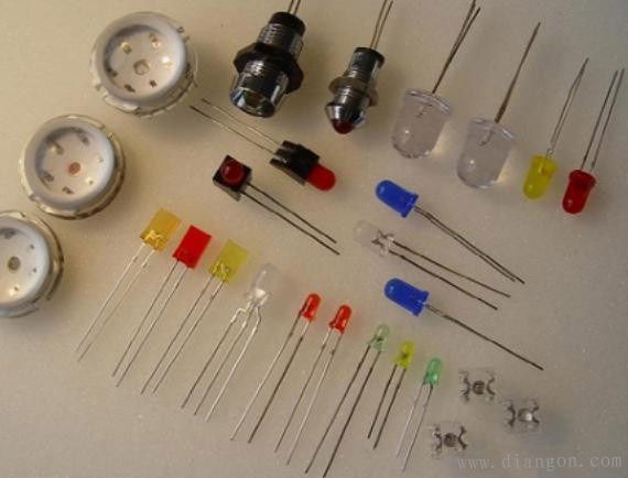 图中有方形,圆形,贴片等LED,颜色也不一样,一般地,发光颜色与灯的外形颜色相同,使用的时候,必须注意几点: