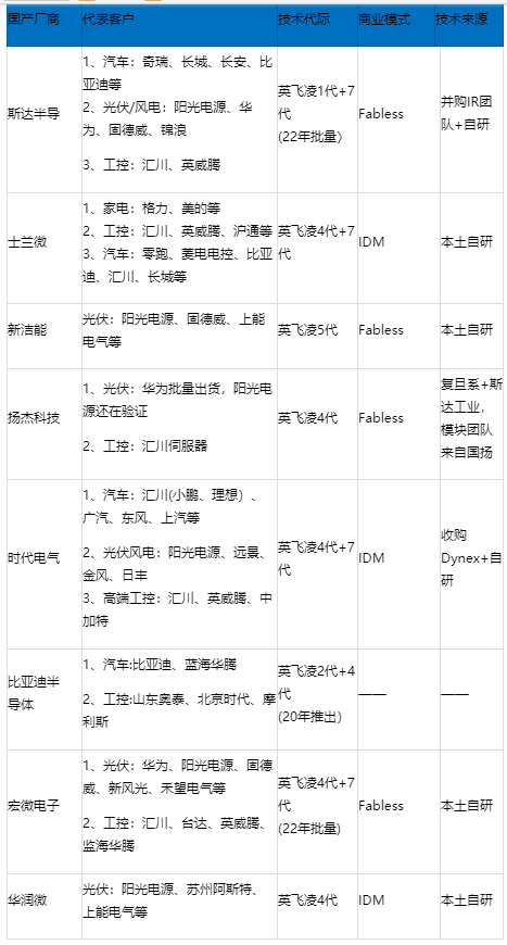 国内四家车规级IGBT厂商对比