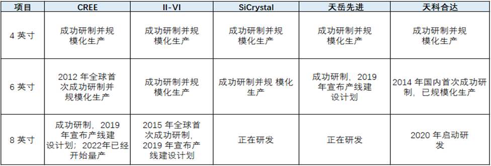 目前国内外厂商碳化硅的技术发展情况