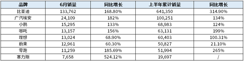 从具体销量来看,今年上半年比亚迪以64.14万辆的销量位于新能源汽车厂商第一,广汽埃安以10.03万辆的销量紧随比亚迪之后,小鹏以6.90万辆排名第三;增长率方面,除了蔚来汽车外,新能源汽车厂商基本上都实现了翻倍增长,尤其以比亚迪增长幅度最大,达到了314.90%的高增长率,半年就完成了去年全年的销量,足见新能源汽车在当下市场的火爆。